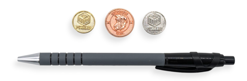 Not everyone wants to create the biggest coin they've ever seen. Moreover, we often create teeny tiny coins (we're not size-shaming here) for businesses to use as tokens and keepsakes without spending a fortune. We've added a pen to the pic for size context.