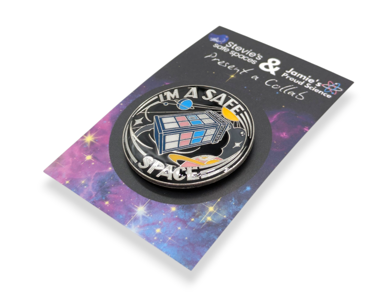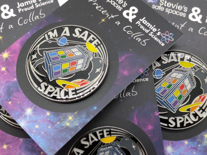 If you'd like to buy one (or more!) of these fantastic rainbow or trans safe spaces pin badges, you can visit Jamie's Store (which delivers to the UK, Norway, and Switzerland) or check out Stevie's online shop (which delivers to the United States and Canada).